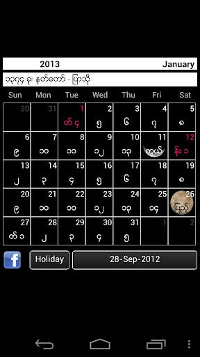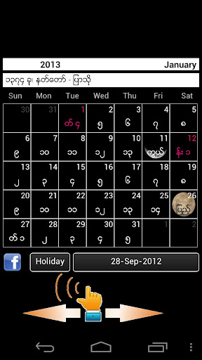 Myanmar Calendar 2013 Lite for Android အားရယူရန္(Zippyshare link)