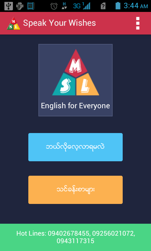 ဒီSpeak Your Wishesဆုိတဲ့ APPတြင္ Englishစကားေၿပာ ေလ့လာေနသူမ်ားအတြက္